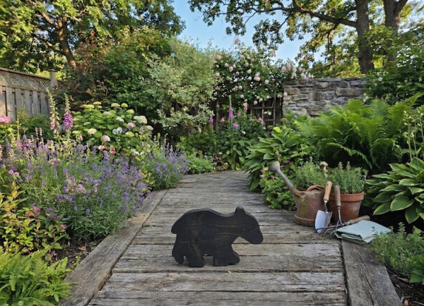 Small bear cub to be used as a decorative peice to set up scenery in your garden. This specific bear cub is not a planter. Bear cub comes sanded and stained. Approximate size is 13" length x 10" high